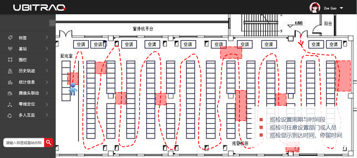 标签:待定位的人员、资产上须佩戴室内定位标签。标签发射UWB信号,与基站相互通信,使标签自身被定位。