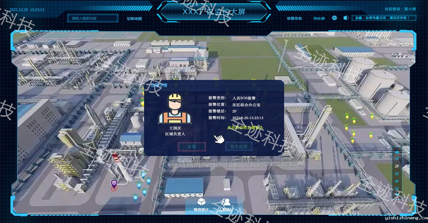 支持单人一键呼救SOS,如遇系统性故障中控台可一键通知全员撤离。