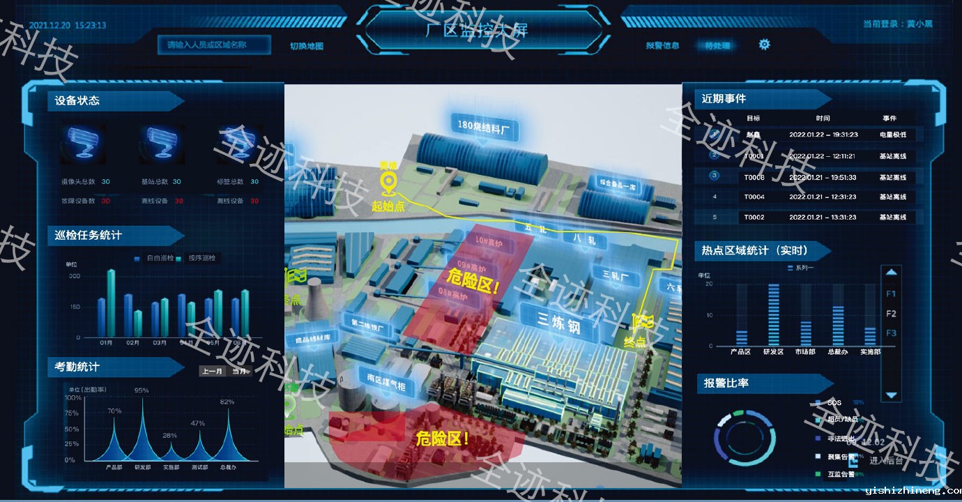 对汽轮机房、锅炉房、电机、油库等高危区域动态监管,无权限人员滞留、靠近则触发告警。