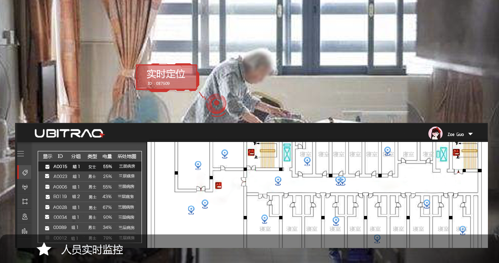 养老行业高精度定位管理系统使用UWB室内定位技术,通过在被看护人身上佩戴定位标签,与养老院内安装的定位基站无线连接,实现对被看护人的精准定位。管理人员可设定电子围栏,被监护人在离开规定区域或超出时间,后台会触发警报。老人在发生意外时可以通过紧急求救按钮向管理人员发出求救信号,管理人员可及时得到老人求救信息和准确位置,进行紧急救助。同时手环型定位标签可以远程监控老人心率、血氧、脉搏、血氧指标等功能。