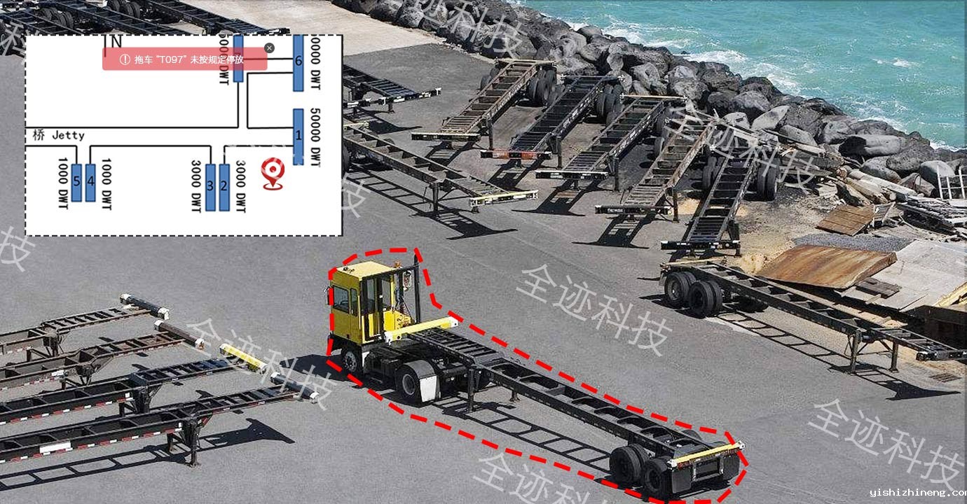 联动进出口管理系统,车辆进入特定区域后实时位置及行驶轨迹动态监控并上传中控台,实现合理调度,安全监管