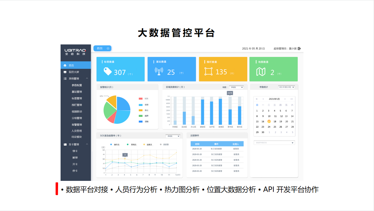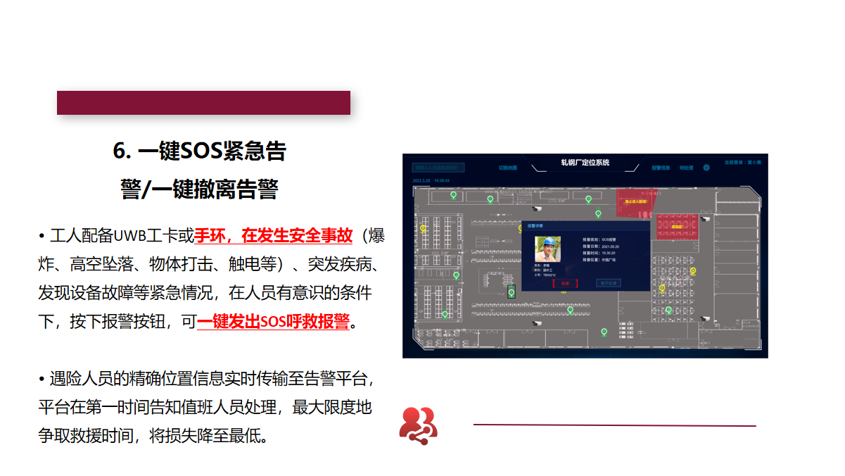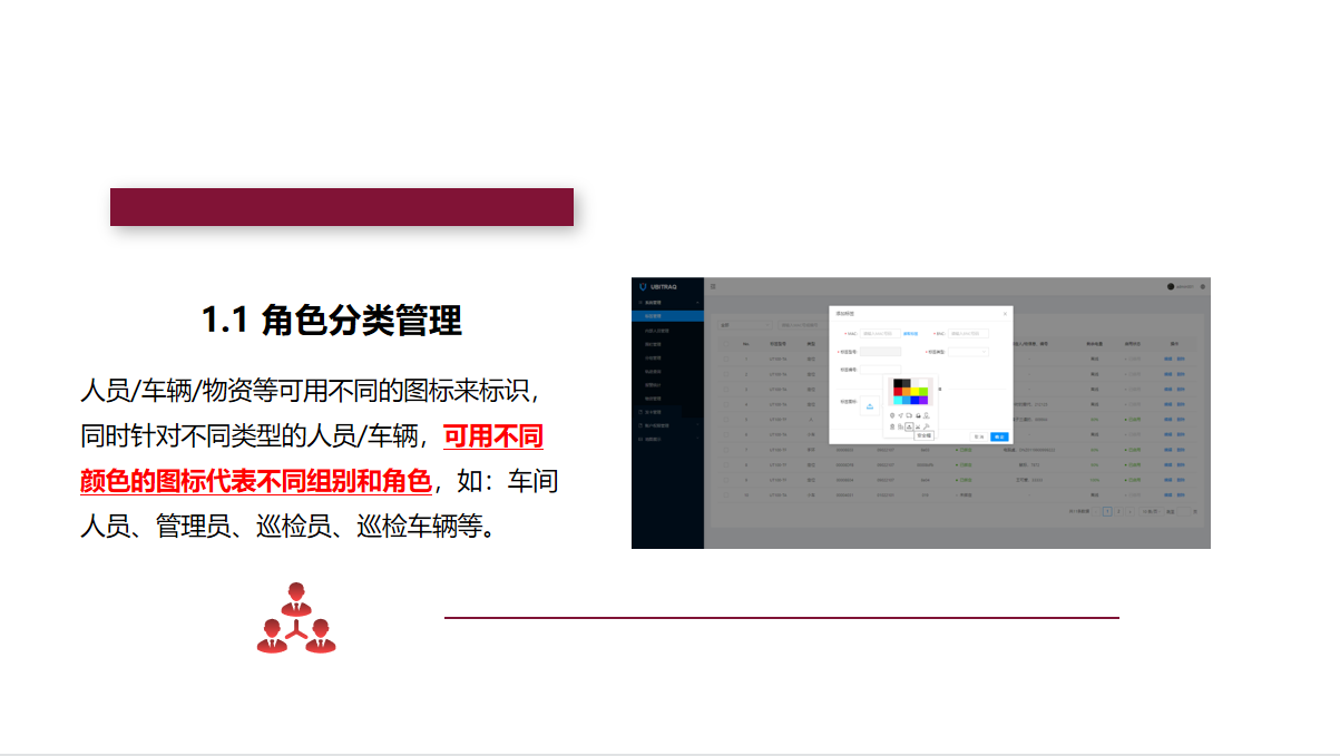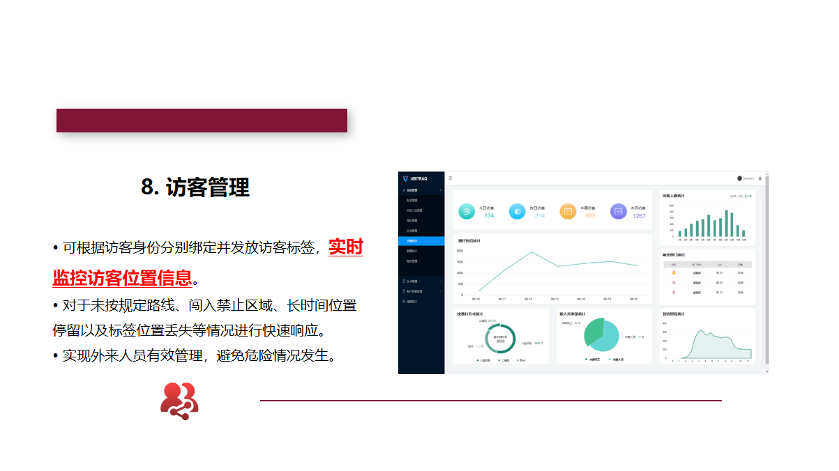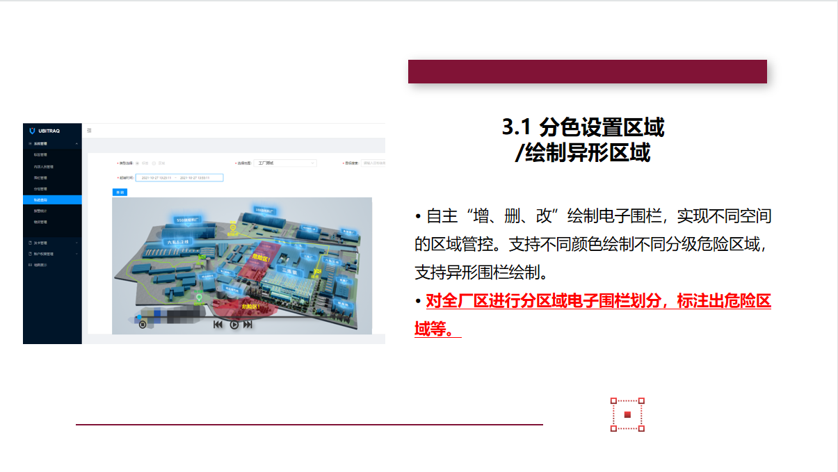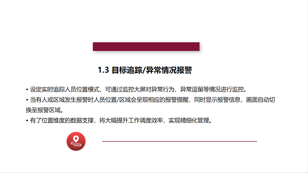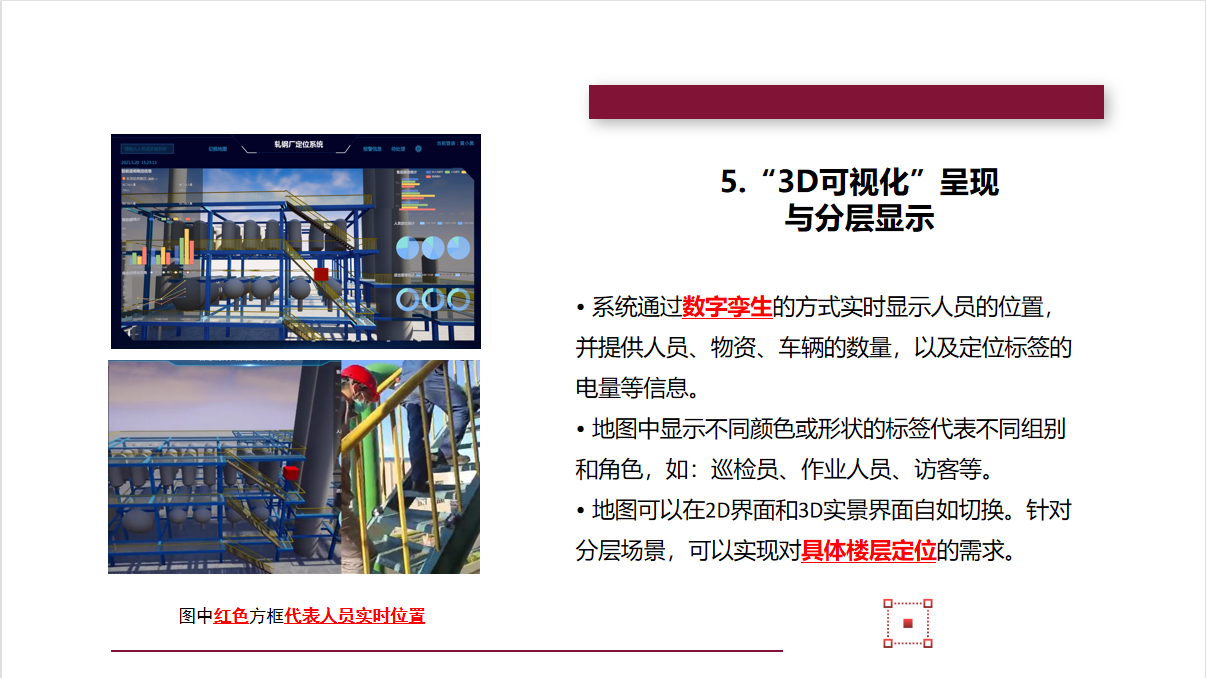 标签:待定位的人员、资产上须佩戴室内定位标签。标签发射UWB信号,与基站相互通信,使标签自身被定位。