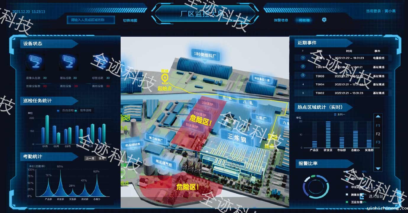 人员、车辆、各类物资分布实时监测并以热力图形式展现,物流通道是否拥堵、特定区域是否超员动态监控。