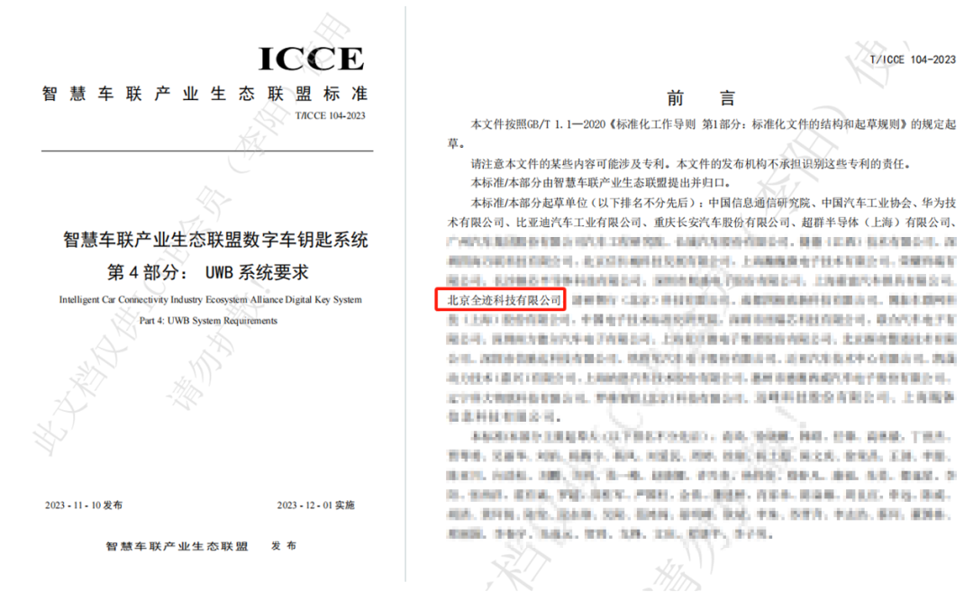 二、韦德官网在线参编制定国内首个系统级UWB数字车钥匙标准,即智慧车联产业生态联盟(ICCE)标准:《数字车钥匙系统 第4部分:UWB系统要求》。该标准由中国信息通信研究院、中国汽车工业协会牵头起草,2023年11月10日发布,2023年12月1日实施。