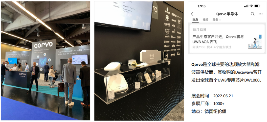 全球著名UWB芯片厂商Qorvo将全迹UWB-AOA带到德国Embedded World 2022展会展示,并在其官方微信公众号上推荐。