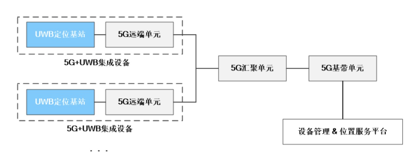 把各个局部区域(例如一个车间、一个工段)的UWB定位基站通过PoE交换机汇聚连接,再把各个交换机通过5G CPE汇聚到中央定位服务器。