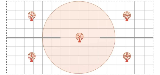 UWB-AOA单基站和传统UWB基站部署方式和数量对比图