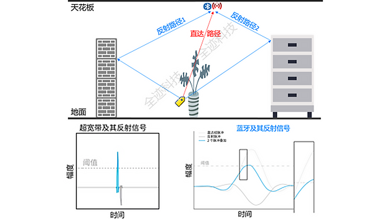 蓝牙AOA:蓝牙技术无法区分直达和反射路径,测得的是包含墙壁等障碍物反射后的混叠信号,在复杂环境下定位精度低、稳定度差。