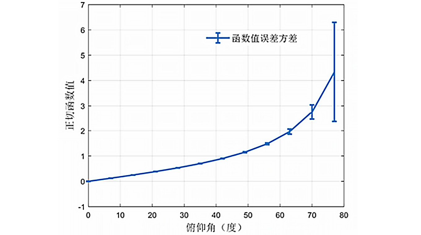 原因1:随着俯仰角增大,相同测角误差引起的平面定位误差增大