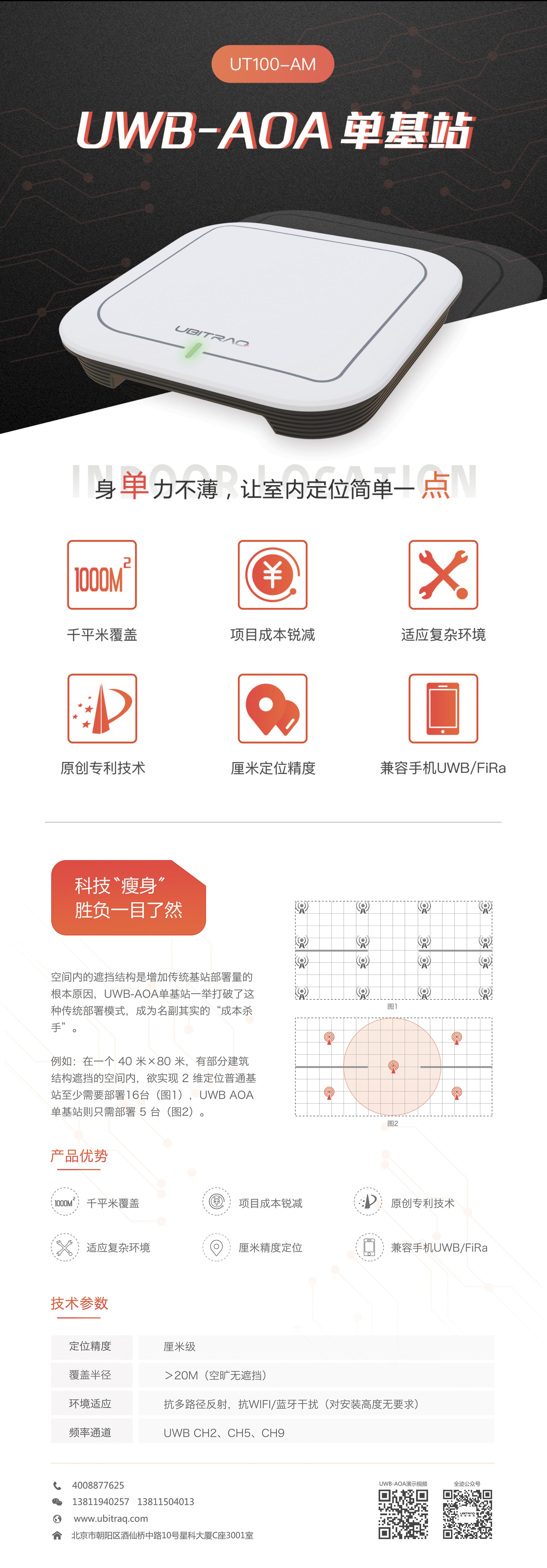 UWB-AOA:单基站覆盖半径>20米,对安装高度无要求