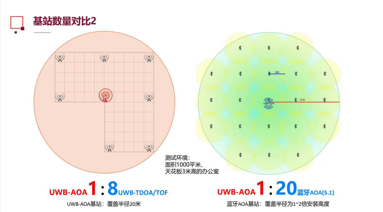 韦德官网在线正式发布基于UWB天线阵列的UWB AOA单基站定位产品演示视频。办公室面积1000平,用1台新型UWB AOA基站即可完全覆盖厘米级精度(包括每个房间),而传统UWB TOF/TDOA方案至少需要7台基站(并且不能覆盖房间),蓝牙5.1 AOA基站至少需要12台(不包含房间,精度也更低),这是UWB定位技术的革新。在未来,高精度室内定位服务会像GPS和云服务一样,成为每个人都触手可得的基础设施。全迹致力成为该行业的领导者。