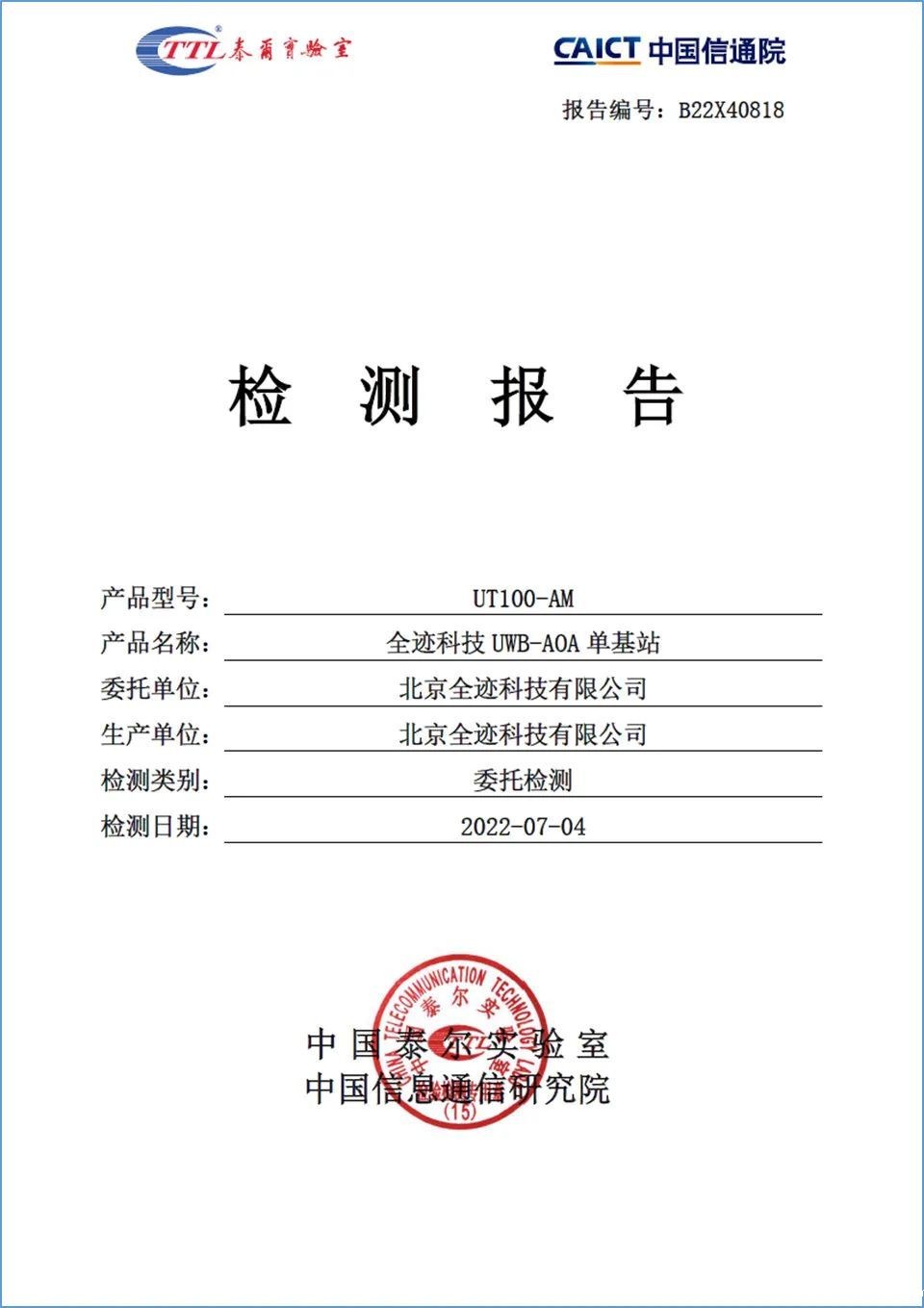 近日,中国信息通信研究院/中国泰尔实验室完成了UWB-AOA单基站定位解决方案检测验证项目。本次相关检测业务由中国泰尔实验室下泰尔系统实验室独立承担完成,为北京韦德官网在线有限公司基于型号为UT100-AM的UWB-AoA单基站解决方案执行了严格的检测并验证了其定位能力。